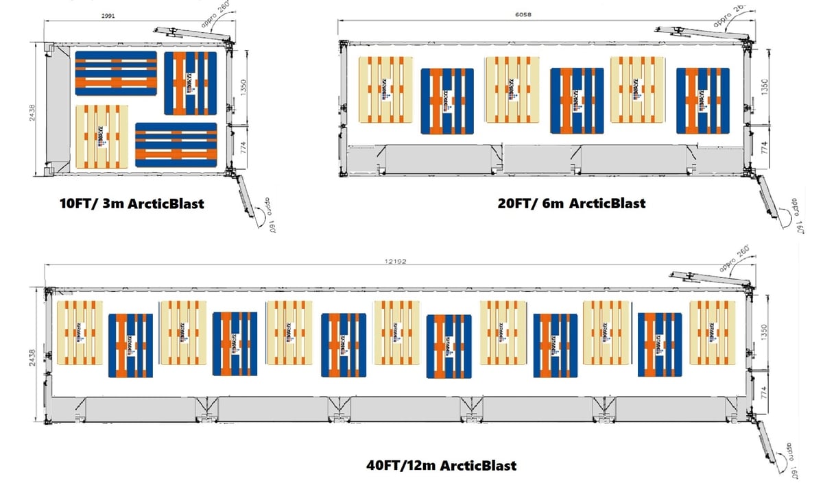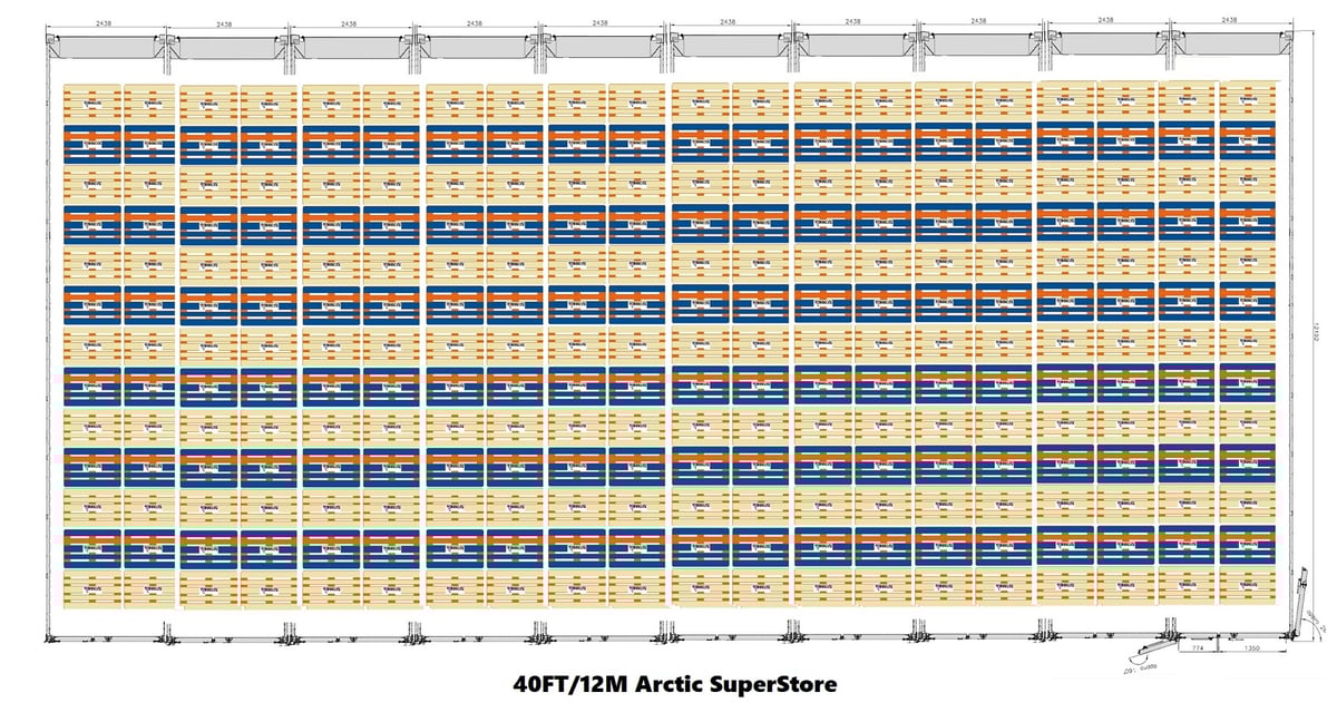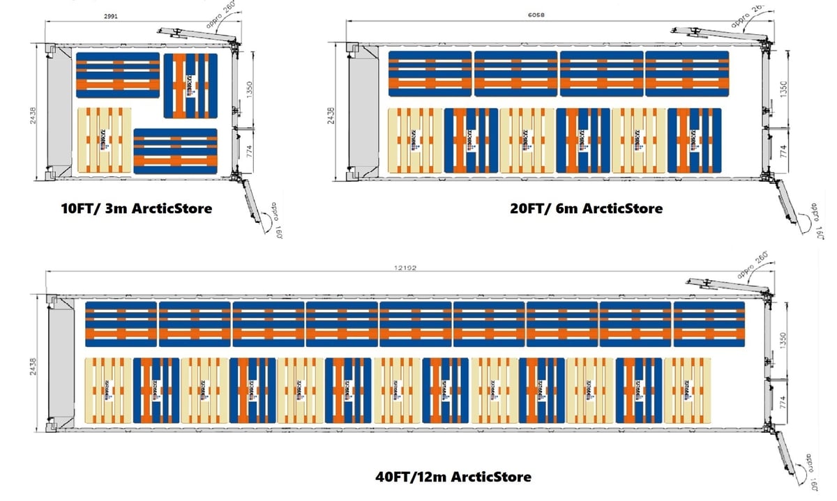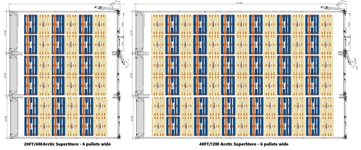 不幸的是,由于ISO集装箱宽度的最大限制,ArcticStores标准不是2个托盘宽。